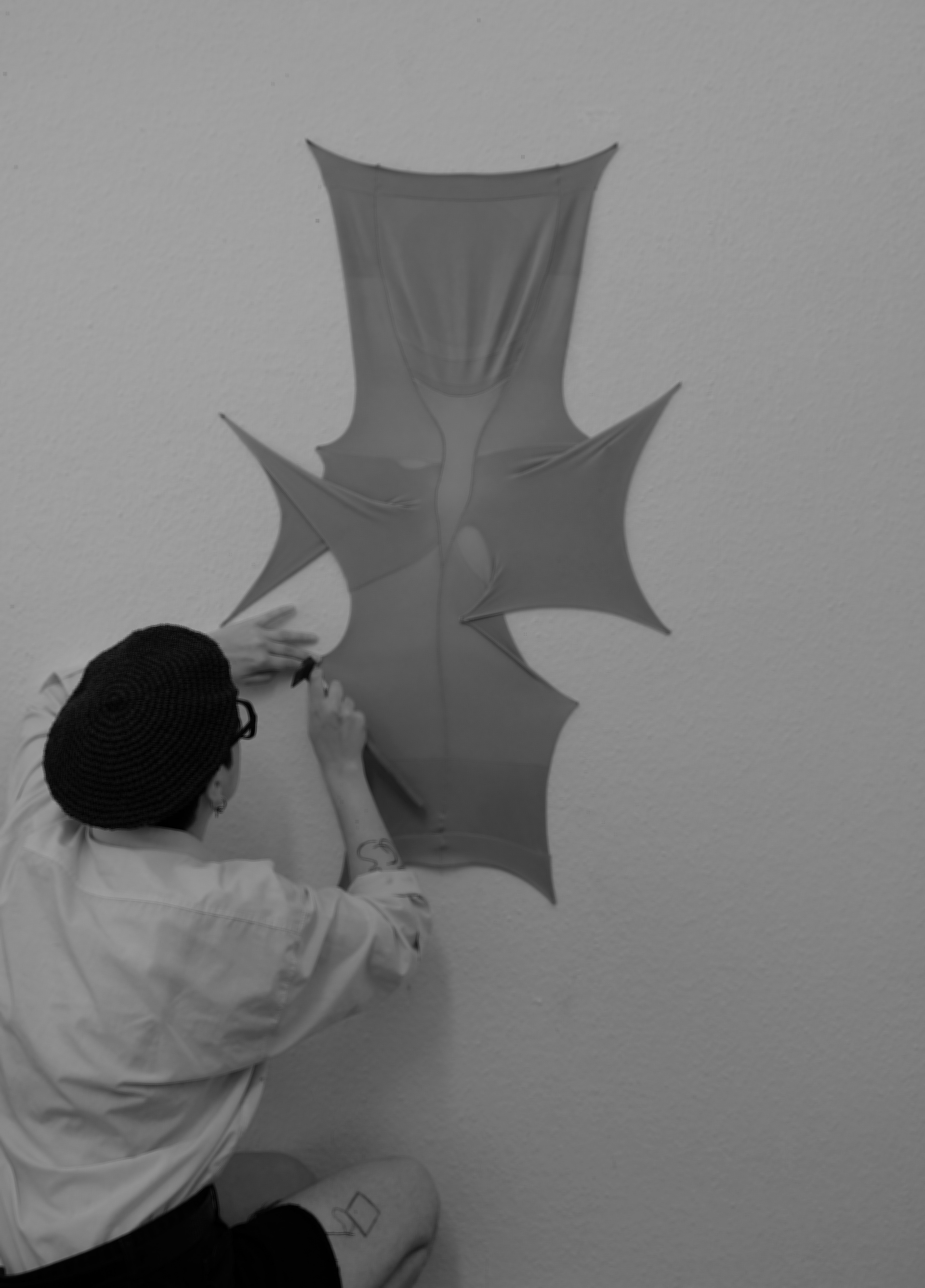 Drawing from a farmers family background, my work is grounded in tactility and labor. Touch, texture, and the sensory encounter with materials guide my process. This sensitivity extends to an attention to class and gender as structures that shape and discipline the body. By reworking clothing materials, particularly shapewear, I investigate how the aesthetics of containment and smoothness influence our understanding of self and desirability. When deconstructed, these textiles become alternative topographies: bodily, wounded, protective – and seen.